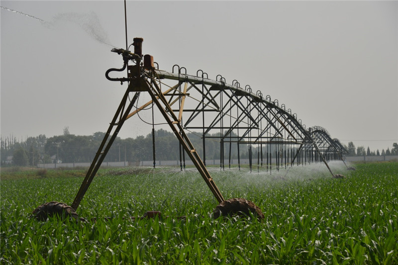 這是6月22日在興勝店村拍攝的大型噴灌設(shè)施。