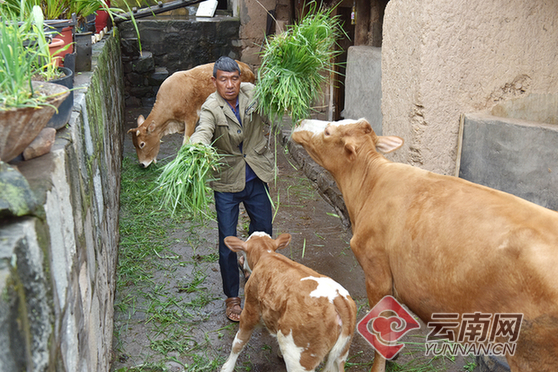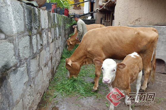 “五六十歲的農(nóng)村人,沒有文化沒有技術(shù),打工誰要?”已經(jīng)是白云村委核桃箐村養(yǎng)牛脫貧帶頭人童富說,“現(xiàn)在,養(yǎng)牛不難,政府給補(bǔ)貼。一年生一頭牛犢就可賺四五千元,‘一年脫貧,兩年致富’是沒有問題的!”