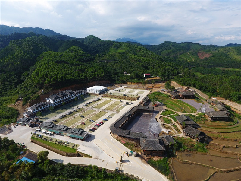 這是廣西融水雙龍溝森林旅游度假區(qū)的游客服務(wù)中心和原生態(tài)苗族文化體驗園(6月26日無人機(jī)拍攝)。