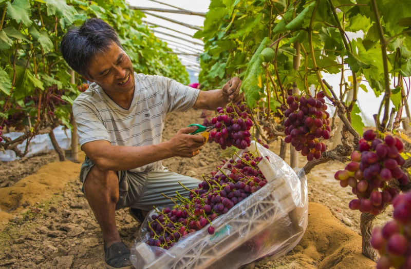 7月2日,河北省棗強(qiáng)縣唐林鎮(zhèn)邵府村村民在自家大棚內(nèi)采摘葡萄。