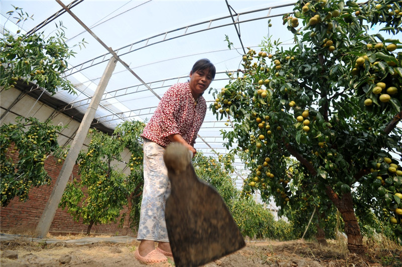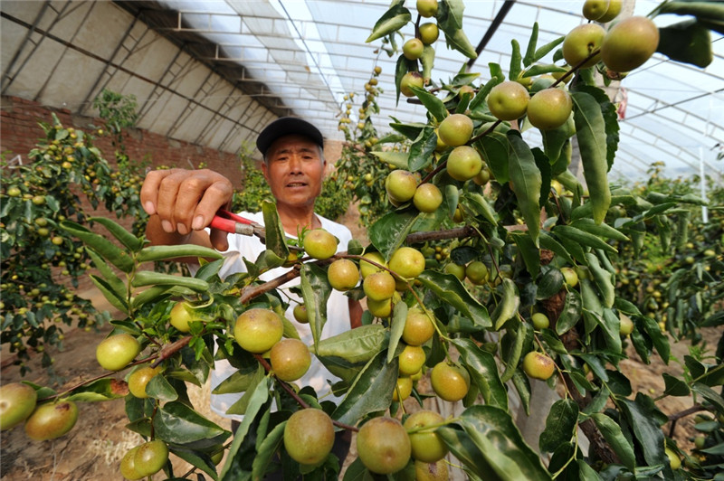 7月5日,農(nóng)民在河北省青縣廣旺現(xiàn)代農(nóng)業(yè)示范園大棚內(nèi)打理冬棗。