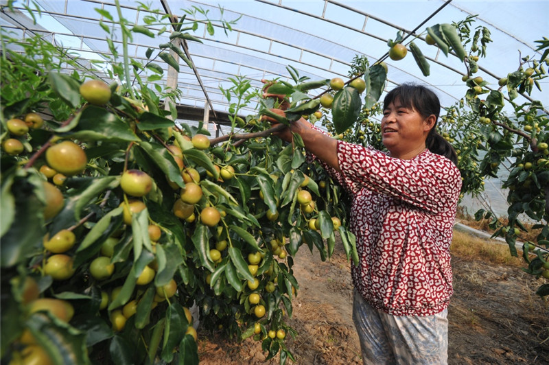 近年來,河北省青縣在推進農(nóng)業(yè)供給側(cè)改革過程中,積極調(diào)整農(nóng)業(yè)產(chǎn)業(yè)結(jié)構(gòu),采取“公司+合作社+農(nóng)戶”的種植模式,引導(dǎo)農(nóng)民因地制宜發(fā)展冬棗種植,成為當(dāng)?shù)剞r(nóng)民增收致富的新亮點。目前,青縣發(fā)展冬棗種植面積2萬余畝,其中設(shè)施冬棗500余畝,帶動5000余農(nóng)戶實現(xiàn)增收。新華社記者 牟宇 攝
