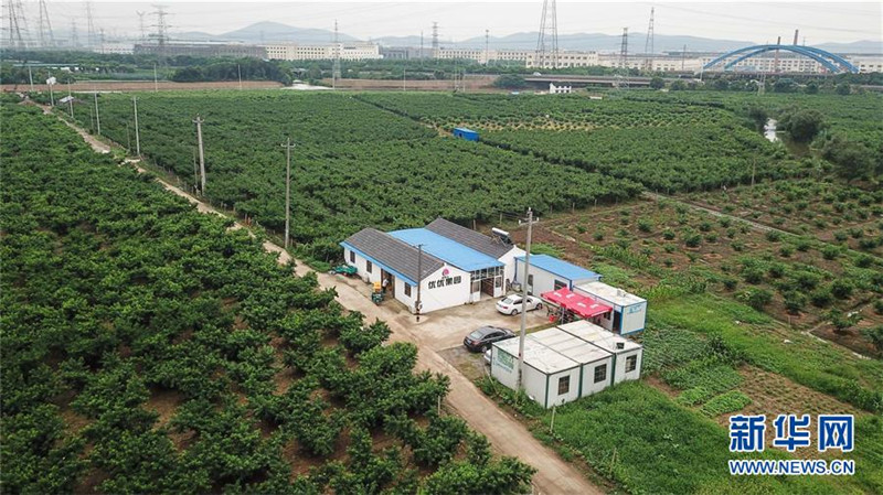 這是7月6日拍攝的無錫市陽山鎮(zhèn)優(yōu)優(yōu)果園專業(yè)合作社水蜜桃種植基地(無人機(jī)拍攝)。