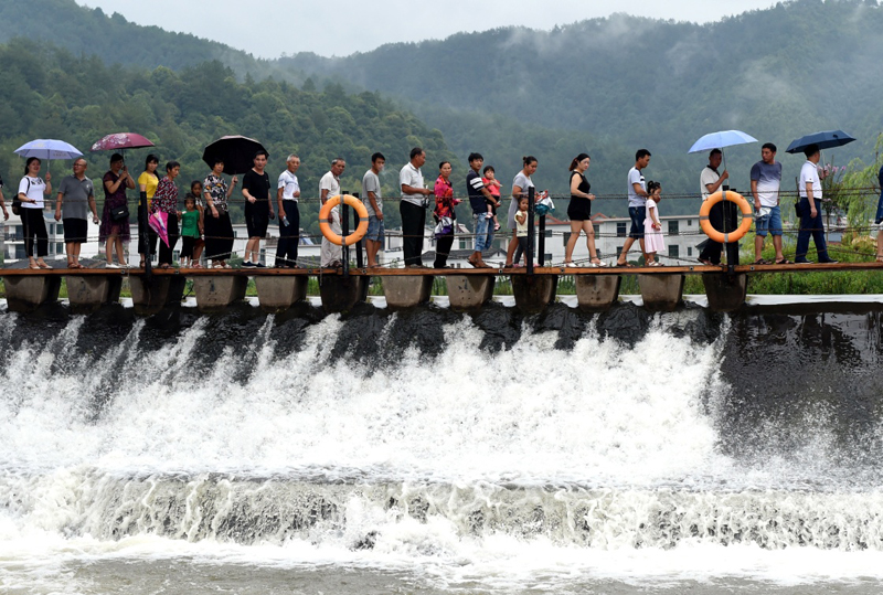 7月7日,游客在連城縣塘前鄉(xiāng)水源村游覽。