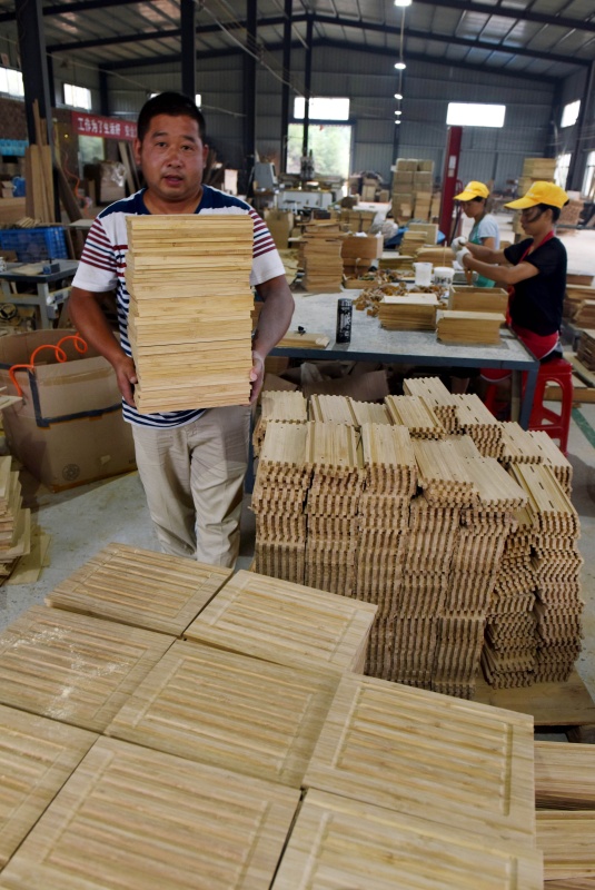 7月6日,洋溪鎮(zhèn)枧田村建檔立卡貧困戶劉秋茍在吉安竹之家竹木制品有限公司搬運竹制品。劉秋茍等5名貧困戶在該公司扶貧車間務工,實現(xiàn)脫貧。