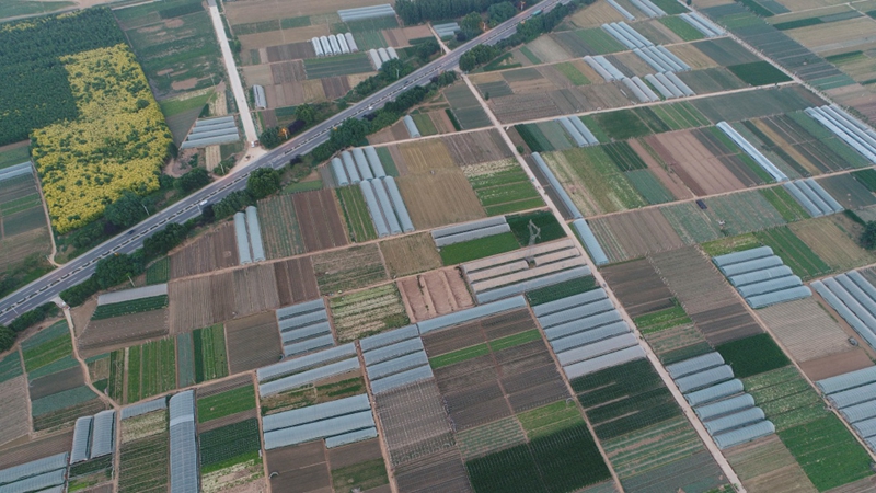 這是7月8日拍攝的河北省魏縣德政鎮(zhèn)后西營村的果蔬大棚(無人機(jī)拍攝)。