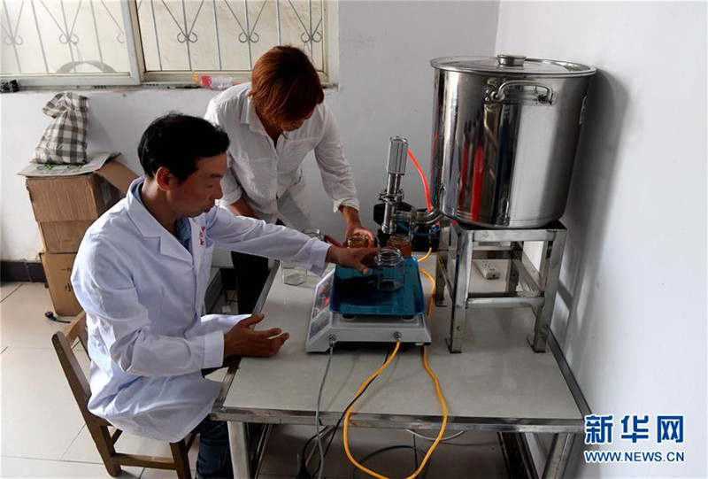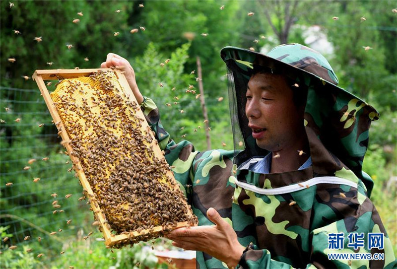 今年37歲的席海水曾是河南省欒川縣潭頭鎮(zhèn)大坪村的建檔立卡貧困戶。2017年初,他加入當?shù)匾患曳N養(yǎng)殖合作社,免費得到6箱黑巖蜂,還接受了技術培訓和上門指導,慢慢摸索到養(yǎng)蜂的門道。如今,席海水熟練掌握了管蜂、取蜜、加工、包裝等一系列工序,手里的蜂箱也從6個變成了16個。這份“甜蜜”的事業(yè),成為席海水成功脫貧的重要支撐。2017年秋天,席海水從距離鎮(zhèn)子30多里山路的深山搬出,在鎮(zhèn)上的易地搬遷社區(qū)安了新家。他說:“蜜蜂都勤勞,咱也不能懶,今后我要繼續(xù)養(yǎng)蜂,多發(fā)展些蜂箱,生活肯定越來越好,越來越甜”。新華社記者 李安 攝