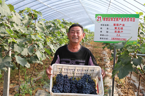 眼下,滁州市南譙區(qū)珠龍鎮(zhèn)扶貧產(chǎn)業(yè)園中的葡萄進(jìn)入采摘季。當(dāng)?shù)赝ㄟ^(guò)幫扶貧困戶發(fā)展特色水果種植項(xiàng)目,增強(qiáng)貧困戶的自身“造血”能力,拓寬致富門路。新華社記者 曹力 攝