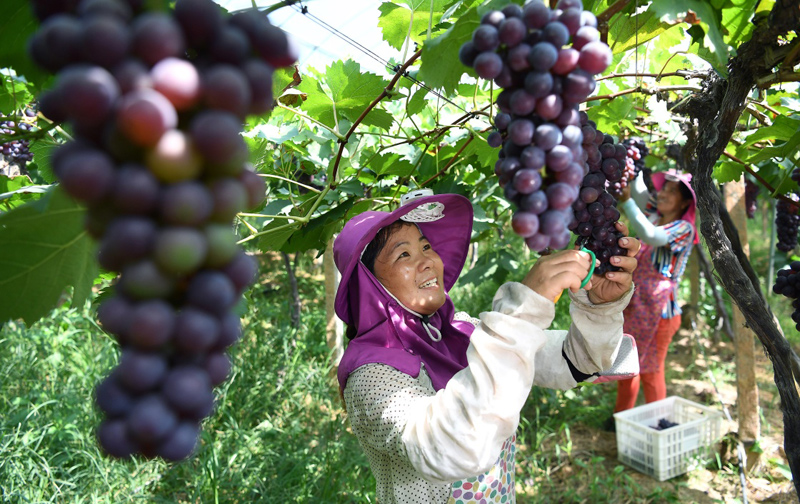 7月18日,在南昌市灣里區(qū)羅亭鎮(zhèn)谷垅葡萄園,農(nóng)民在采摘葡萄。