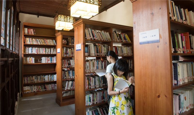 7月19日,讀者在德清縣乾元國學(xué)圖書館瀏覽書籍。