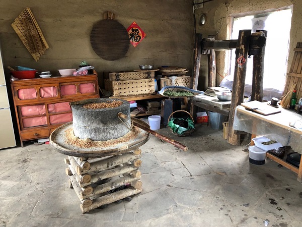 錦江木屋村的磨坊店可供游客制作手工豆腐