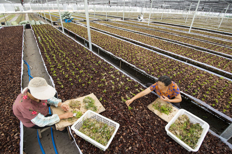7月21日,在海安經(jīng)濟(jì)技術(shù)開發(fā)區(qū)壯志街道,農(nóng)民在大棚內(nèi)培育鐵皮石斛。
