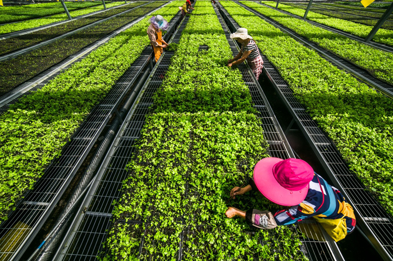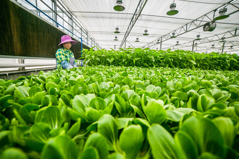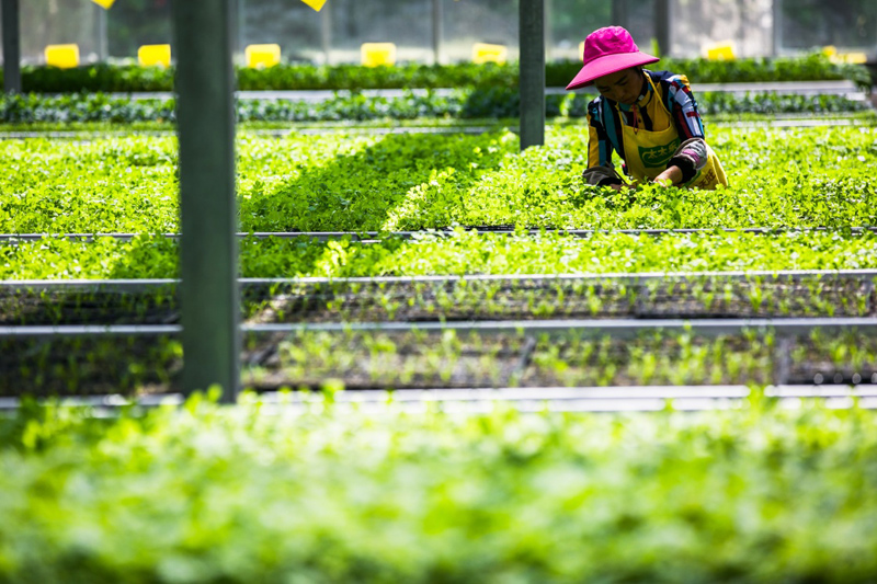 7月24日,在貴州省大方縣東關(guān)鄉(xiāng)育苗中心基地,菜農(nóng)管理水培蔬菜。