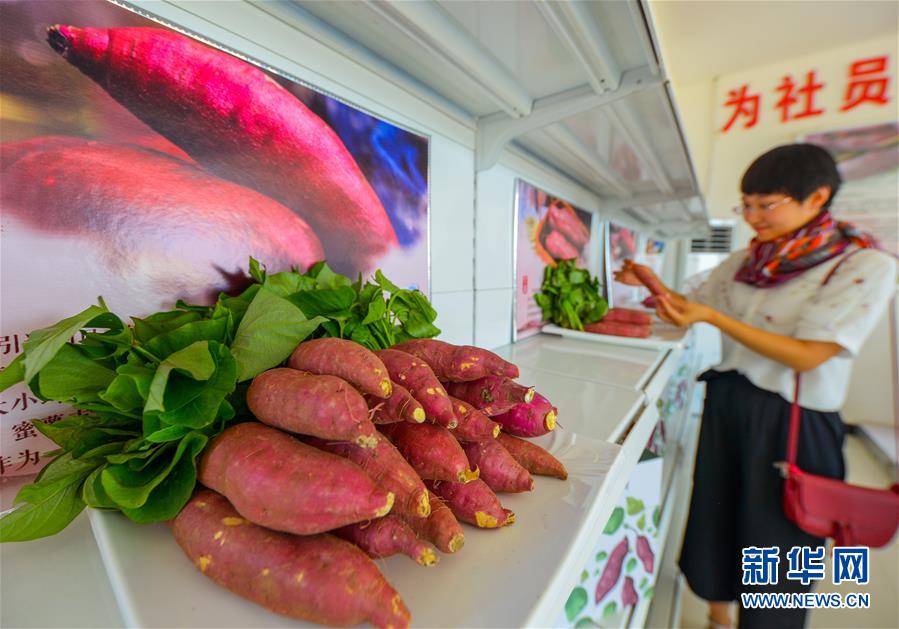 7月26日,在邯鄲市邱縣邱城鎮(zhèn)天恩種植專業(yè)合作社,游客在紅薯展廳選購紅薯。