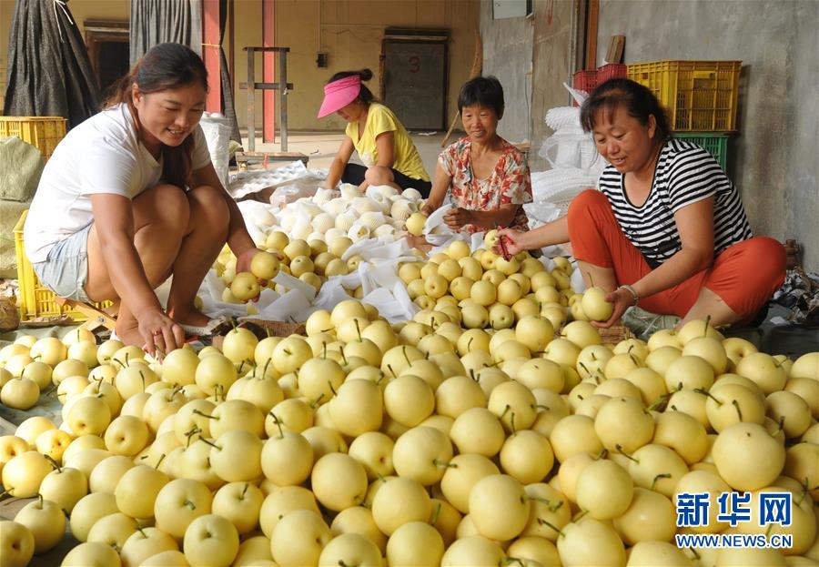 8月4日,河北泊頭市亞豐果品有限公司工作人員在包裝圓黃梨。