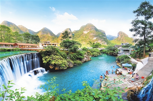 廣西河池市金城江區(qū)河池鎮(zhèn)拉顯村英洞屯山水如畫。