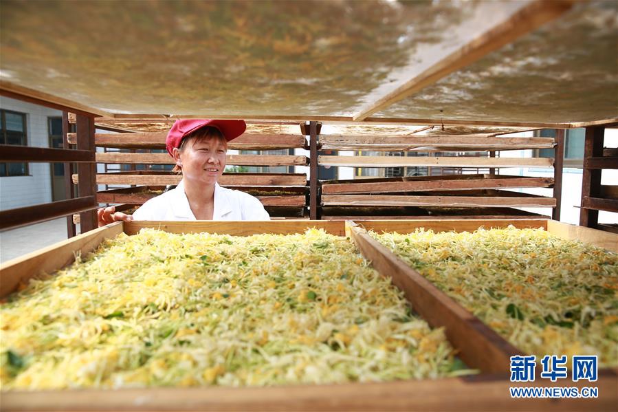 8月12日,河北省內(nèi)丘縣大孟村鎮(zhèn)劉家莊村農(nóng)民在整理收獲的金銀花。