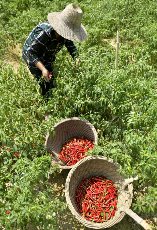 立秋過后,湖北省恩施土家族苗族自治州宣恩縣的辣椒進入采收高峰期。辣椒種植是宣恩縣在推進精準(zhǔn)扶貧過程中,結(jié)合當(dāng)?shù)剞r(nóng)民種植經(jīng)驗而推廣的富民產(chǎn)業(yè)。按照品種特色化、種植規(guī);、產(chǎn)銷一體化的“公司+基地+貧困戶”的模式,結(jié)合市場需求進行訂單種植,其加工品暢銷湘、鄂、川、黔等地市場。新華社發(fā)(宋文 攝)