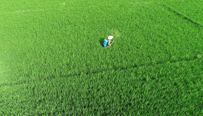 初秋時節(jié),山東省臨沂市農(nóng)民加強(qiáng)水稻田間管理,為秋收打好基礎(chǔ)。新華社發(fā)(張春雷 攝)