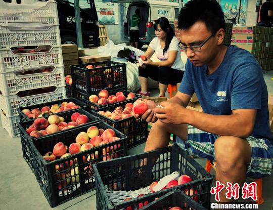 京郊農(nóng)民對(duì)本地產(chǎn)大桃進(jìn)行篩選!≮w帥宇 攝