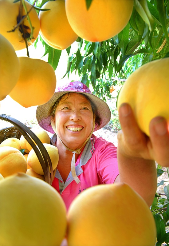 初秋時(shí)節(jié),山東省沂源縣東里鎮(zhèn)的3萬(wàn)余畝黃桃迎來(lái)豐收,當(dāng)?shù)毓r(nóng)加緊采收銷往各地市場(chǎng)。新華社發(fā)(趙東山 攝)