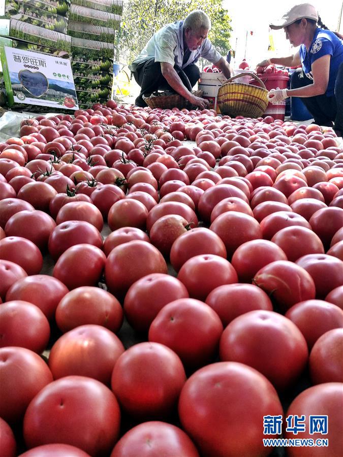 8月28日,陜西省渭南市華州區(qū)金堆鎮(zhèn)東西坪村村民在包裝準(zhǔn)備外銷的高山水果西紅柿。