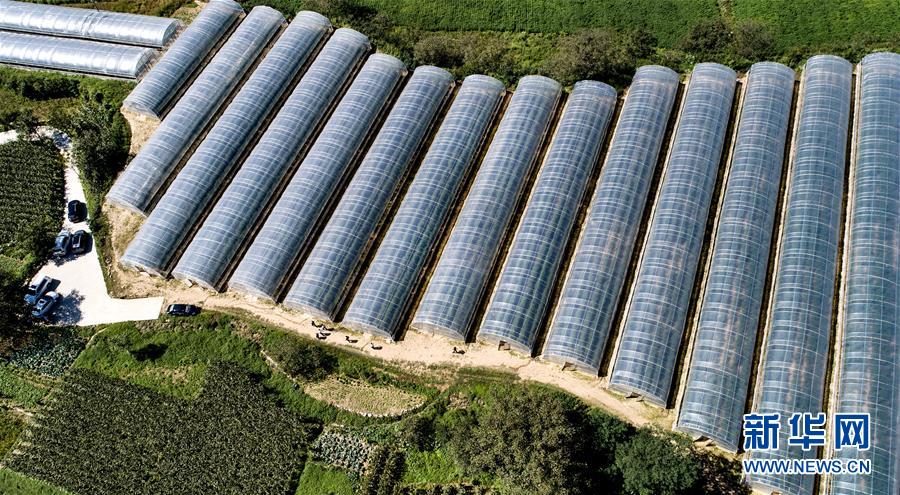 這是陜西省渭南市華州區(qū)金堆鎮(zhèn)建起的高山西紅柿大棚(8月28日無人機拍攝)。