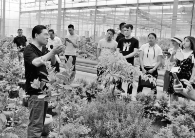 “當代大學生思想活躍,掌握新東西多,他們能給傳統(tǒng)農(nóng)村輸入現(xiàn)代化、科學化的新思想、新血液,F(xiàn)場觀摩這些‘高大上’的采摘園,受益良多!苯鸩薪鸫▍^(qū)寧遠堡鎮(zhèn)高岸子村黨支部書記助理王曉麗興奮地說。