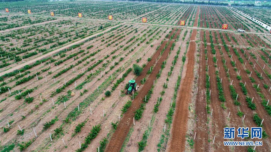 這是寧夏銀川市永寧縣閩寧鎮(zhèn)原隆村紅樹(shù)莓基地(8月17日無(wú)人機(jī)航拍)。