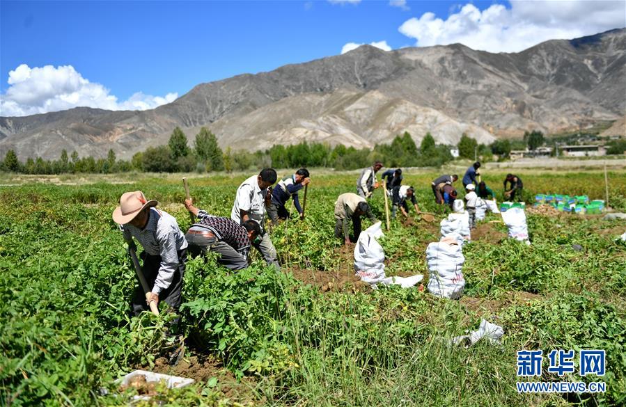 近日,西藏日喀則市桑珠孜區(qū)東嘎鄉(xiāng)6000余畝土豆喜獲豐收。在山東省青島市第八批援藏干部的支持下,東嘎鄉(xiāng)成立了專業(yè)合作社,將全鄉(xiāng)280戶1048名建檔立卡貧困群眾納入合作社,注冊(cè)了“東嘎土豆”商標(biāo)推廣有機(jī)土豆種植,帶動(dòng)群眾精準(zhǔn)脫貧。新華社記者 張汝鋒 攝