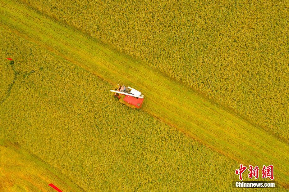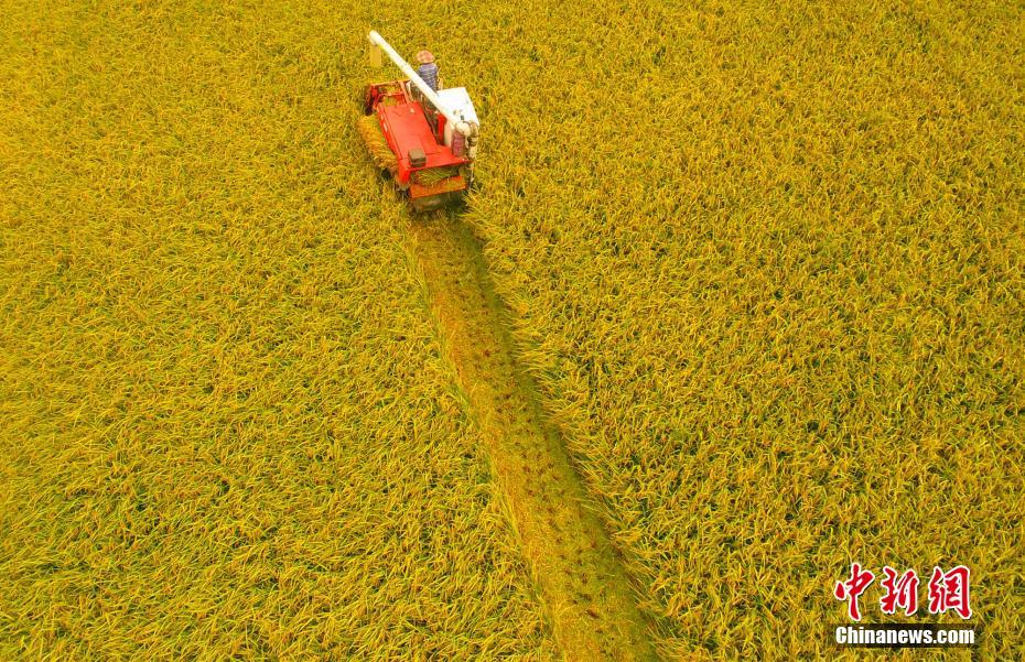 湖北枝江進(jìn)入中稻收獲季節(jié)。