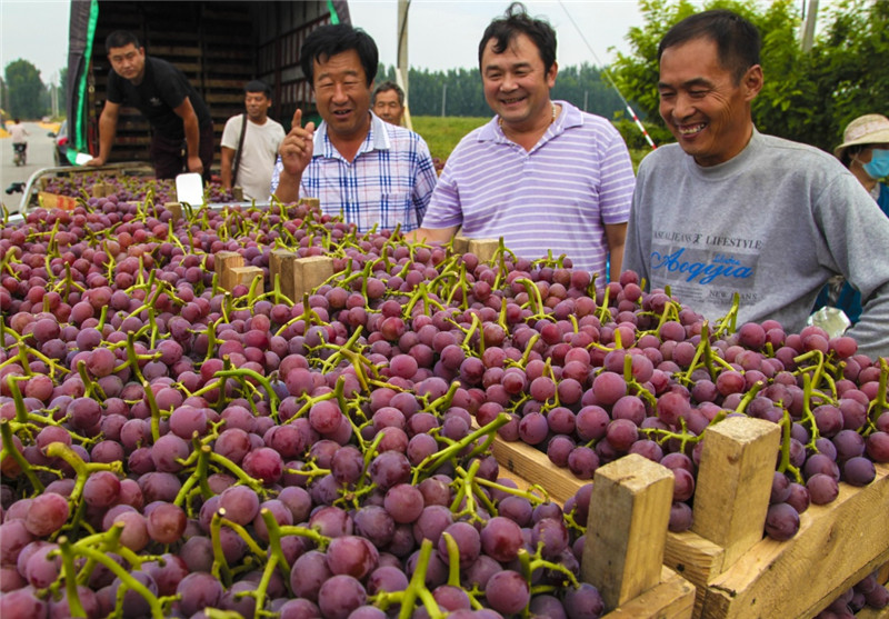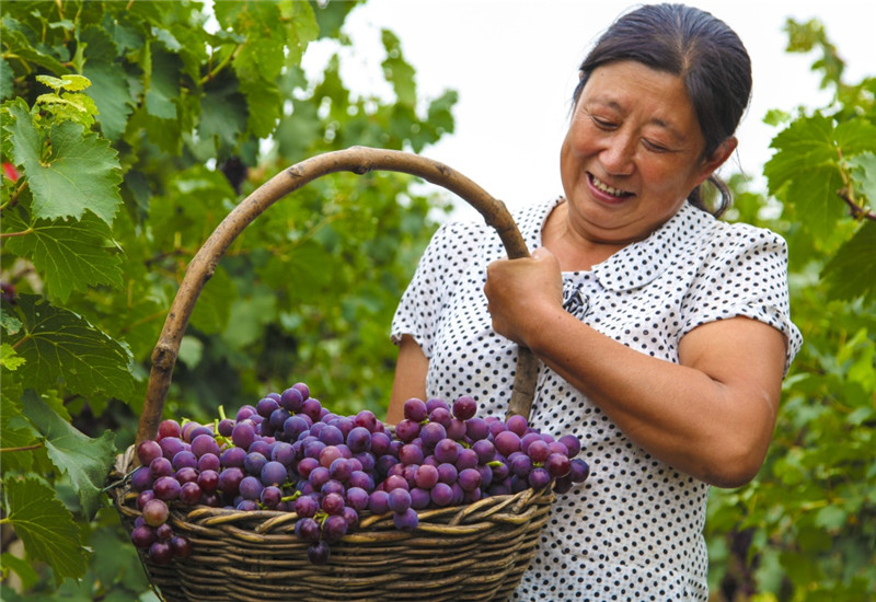 9月11日,李奉先村果農(nóng)在收葡萄。