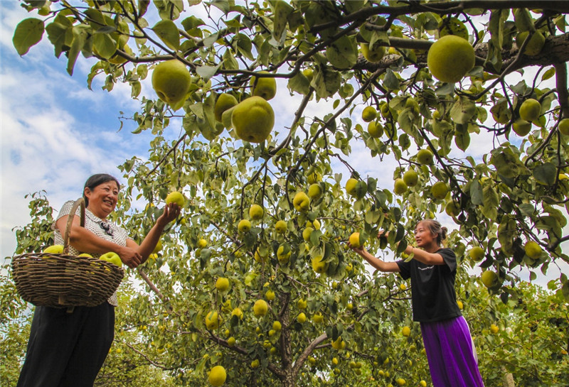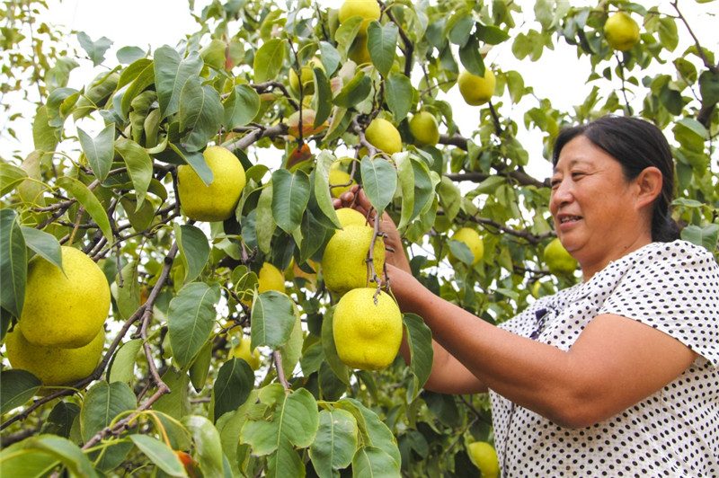 9月11日,李奉先村果農(nóng)在采摘梨。