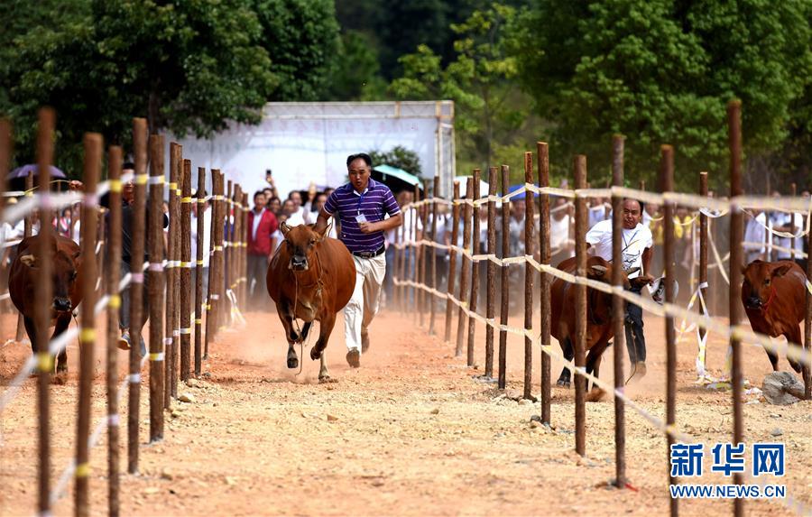9月11日,在白圩鄉(xiāng)盛世觀園生態(tài)農(nóng)莊,養(yǎng)牛戶帶著耕牛參加奔牛比賽。