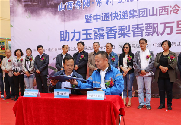 中國農(nóng)業(yè)新聞網(wǎng)訊 9月17日,山西壽陽縣常村2018玉露香梨開園儀式暨中通快遞集團(tuán)山西冷鏈?zhǔn)装l(fā)發(fā)布會(huì)在常村舉行;顒(dòng)現(xiàn)場(chǎng),壽陽玉露香梨產(chǎn)業(yè)基地與中通快遞集團(tuán)簽訂合作協(xié)議,在中通冷鏈運(yùn)輸?shù)闹С窒,太原至上海、廣州、南寧等十余個(gè)城市實(shí)現(xiàn)今發(fā)明至,壽陽縣玉露香梨將第一時(shí)間送達(dá)全國消費(fèi)者的手中。