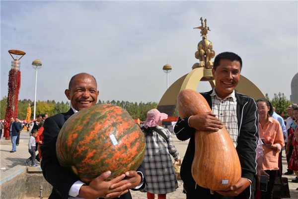 在活動(dòng)現(xiàn)場(chǎng),來(lái)自全縣14個(gè)鄉(xiāng)鎮(zhèn)以及涉農(nóng)企業(yè)展示了近百種產(chǎn)品!敖裉鞄е约悍N的南瓜來(lái)慶祝農(nóng)民自己的節(jié)日,非常高興。”庫(kù)車(chē)縣烏恰鎮(zhèn)三烏恰村村民艾則孜·賽買(mǎi)提從去年開(kāi)始種南瓜,但由于種植技術(shù)落后,導(dǎo)致南瓜產(chǎn)量不高。今年,他在技術(shù)人員和駐村工作隊(duì)的幫助下,種植技術(shù)和田間管理都進(jìn)行了改良,現(xiàn)在一畝地能賣(mài)2000元,比去年高出1倍。