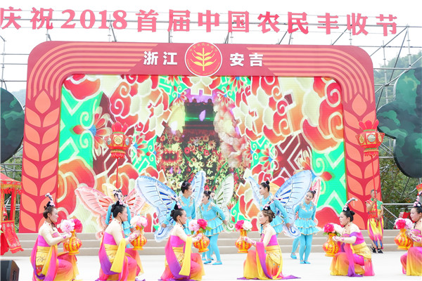 余村是習近平總書記“綠水青山就是金山銀山”重要思想的發(fā)源地。此次,浙江在余村設立了慶祝首個中國農(nóng)民豐收節(jié)的主會場,也是全國六個分會場之一;顒右浴皟缮綗嵬 浙里豐收”為主題,融合當?shù)刂、茶等特色產(chǎn)業(yè)元素,由農(nóng)民演員奉獻的董嶺花燈拉開帷幕后,村歌聯(lián)唱、竹樂表演、銀龍起舞等節(jié)目,引得游客流連忘返。當天,還有美味的農(nóng)家小吃,琳瑯滿目的特色農(nóng)產(chǎn)品展、電商展、民宿展,尤其是無人植保機的表演現(xiàn)場圈粉無數(shù)。