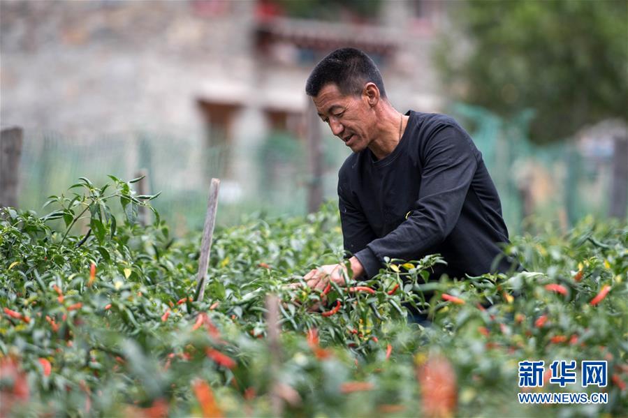 9月29日,在香格里拉市五境鄉(xiāng)澤通村,農(nóng)戶(hù)在田地里采摘朝天椒。