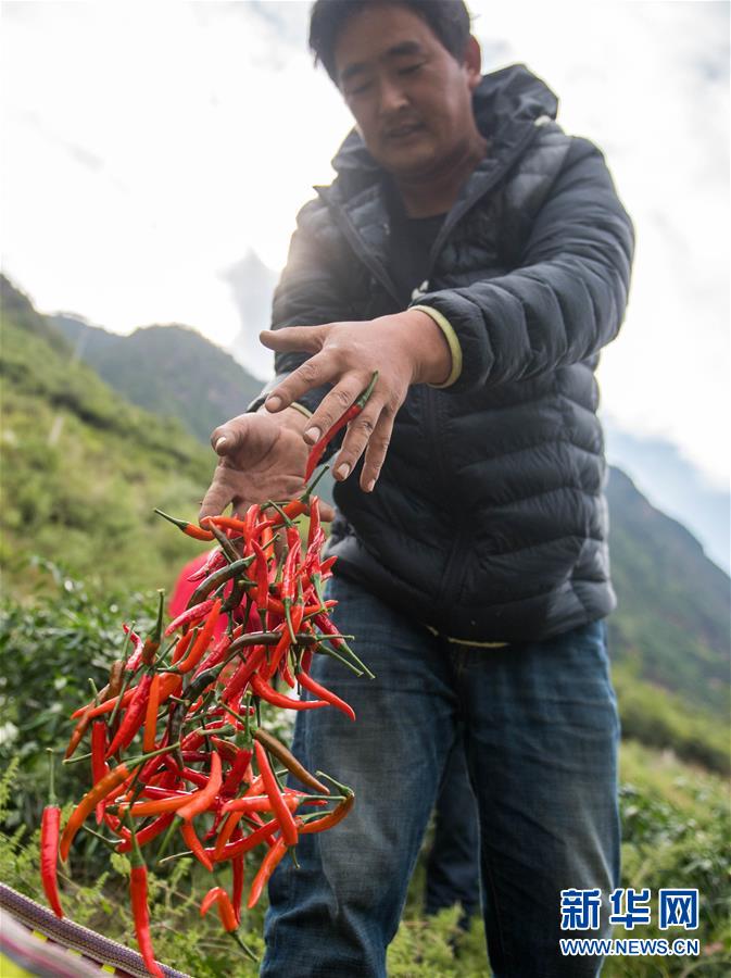 近日,云南省迪慶藏族自治州香格里拉市五境鄉(xiāng)澤通村340畝朝天椒喜獲豐收,當(dāng)?shù)厝罕娮ゾo晴好天氣搶摘辣椒。 新華社記者 胡超攝