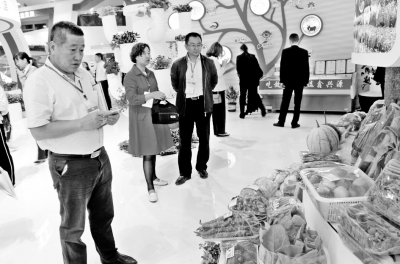 圖為青海綠色發(fā)展投資貿(mào)易洽談會上“老爺山”蔬菜展示區(qū)。