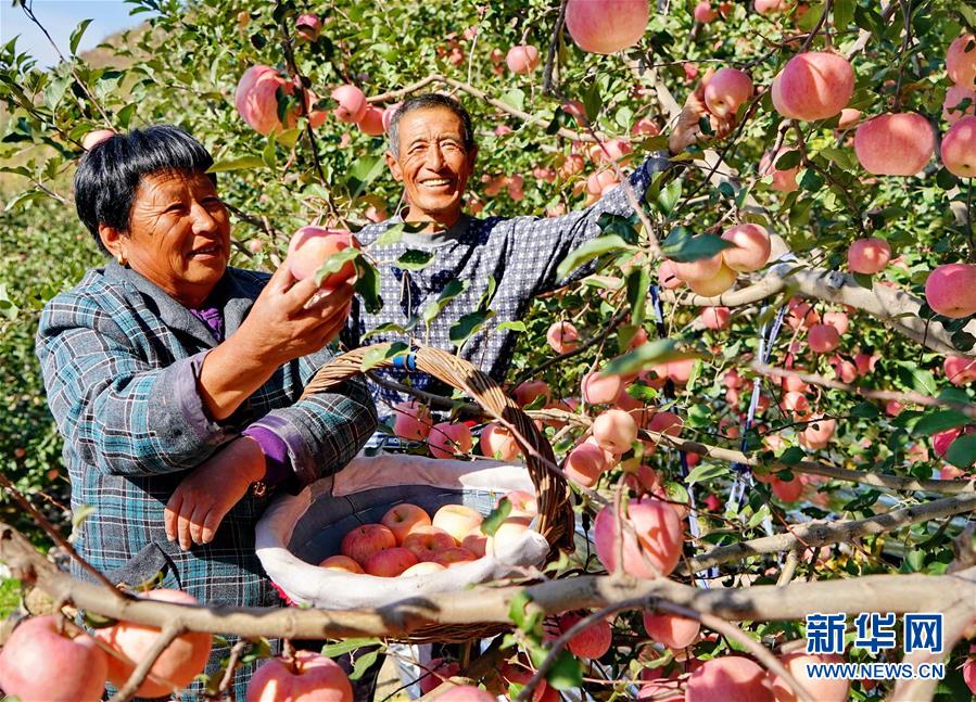 秦皇島市撫寧區(qū)大新寨鎮(zhèn)梁家灣村的果農(nóng)在果園采摘蘋果(10月14日攝)。