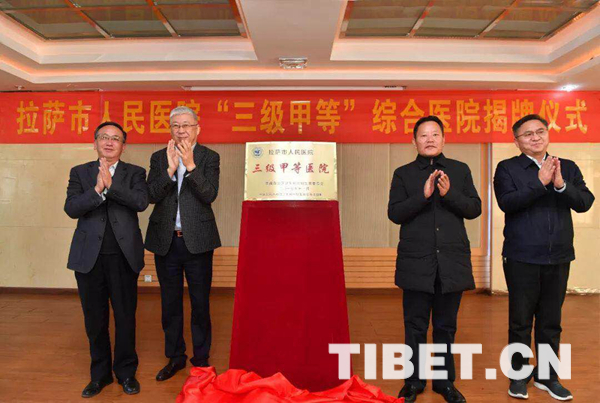 圖為拉薩市人民醫(yī)院“三甲”揭牌儀式 由北京援藏指揮中心提供