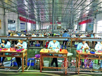 在審計署廣州特派辦駐雷州市流沙村工作隊的協(xié)調(diào)下,尊鼎珍珠公司吸納60余名貧困戶就業(yè)。 省扶貧辦供圖