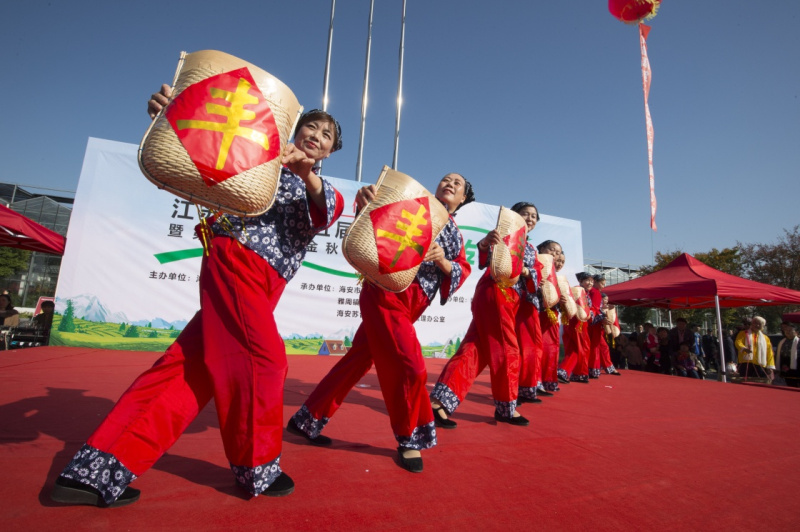 10月27日,在海安市第五屆鄉(xiāng)村旅游節(jié)上,演員在進行民俗文藝表演。新華社發(fā)(徐勁柏 攝)