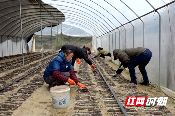 村民在香菇大棚忙碌。