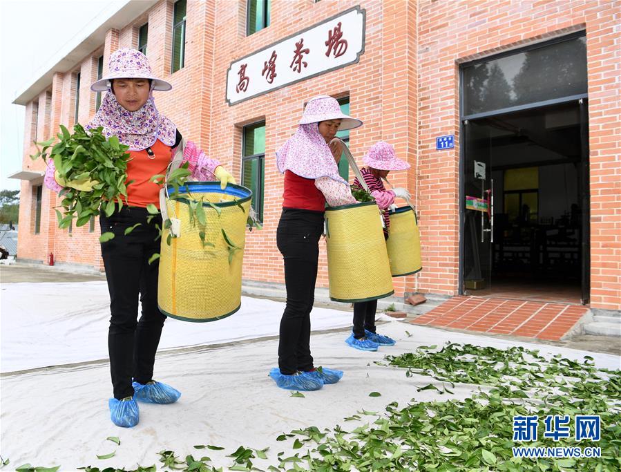 11月7日,福建平和高峰茶場的工人在晾曬茶青。