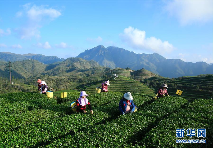 時下正是福建白芽奇蘭秋茶采摘季,在福建省漳州市平和縣高峰谷生態(tài)茶園,1000多畝梯田茶園綿延分布在群山之中。當?shù)夭柁r(nóng)搶抓晴好天氣,采茶制茶。 新華社記者 姜克紅 攝