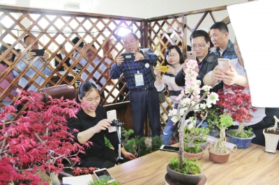 沭陽(yáng)縣花農(nóng)正在網(wǎng)上直播銷(xiāo)售花木產(chǎn)品。孫玉忠攝