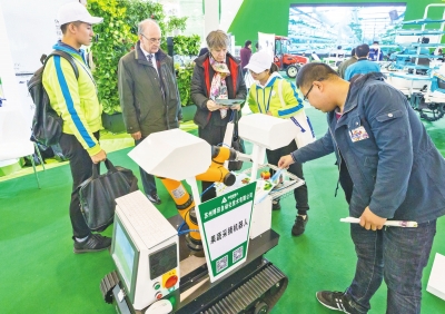 2017年12月,中國(guó)江蘇·現(xiàn)代農(nóng)業(yè)科技大會(huì)上展示的果蔬采摘機(jī)器人引人注目。