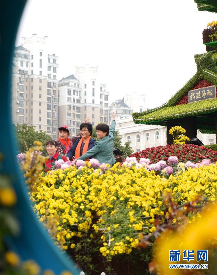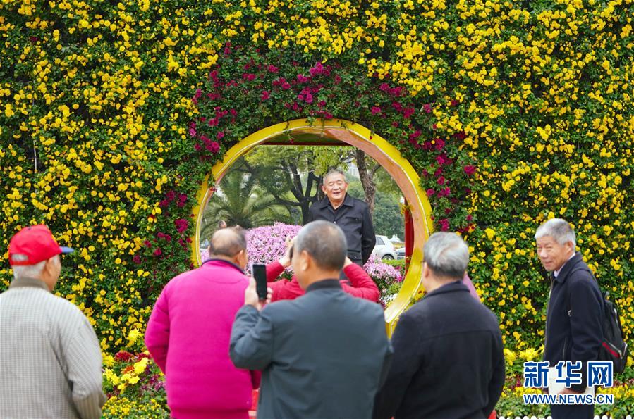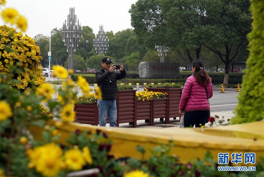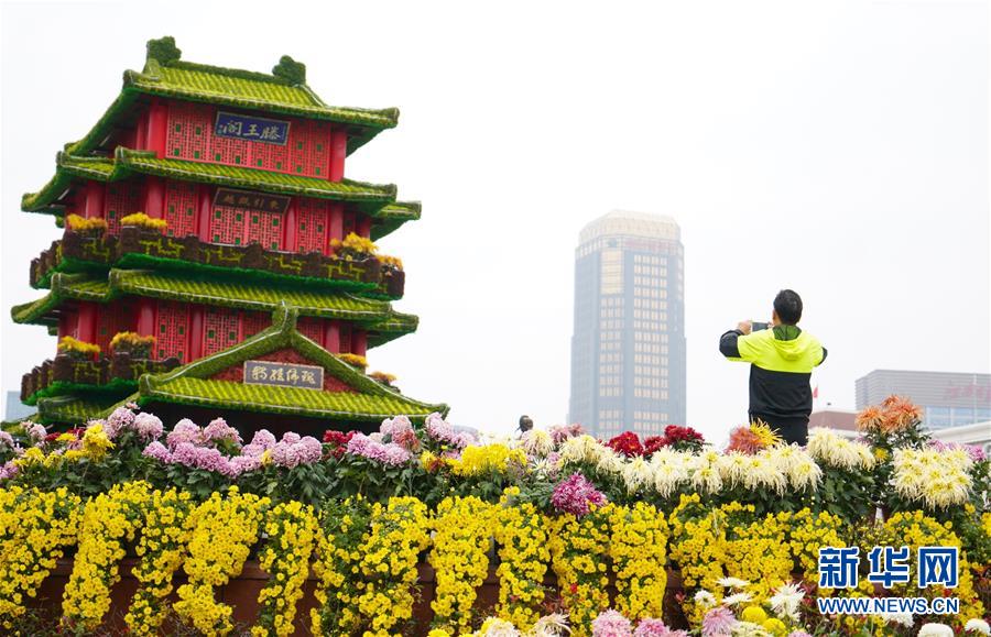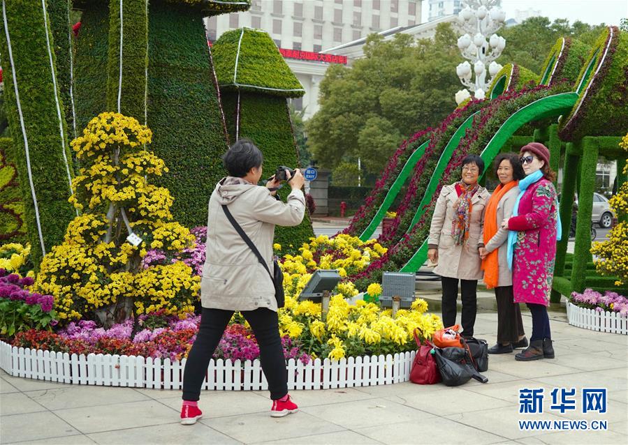 11月12日,游客在南昌市第三十屆菊花展上拍照。